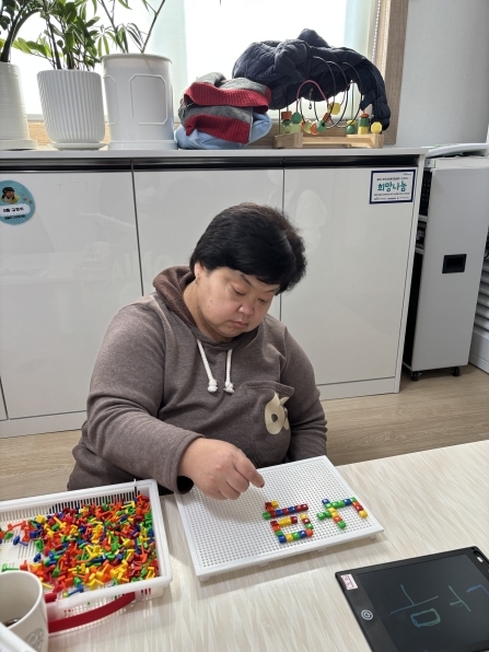3월 19일 (목요일) 이용자 활동 모습 페이지 정보 작성자최고관리자 댓글 0건 조회 24회 작성일 26-03-20 10:19 본문 퍼즐활동 교구활동 한글공부 숫자공부 시지각활동 숨은그림찾기 슐런 목록 이전글3월 19일 (목요일) 이용자 활동 모습 26.03.20 다음글3월 19일 (목요일) 이용자 활동 모습 26.03.20 댓글목록 댓글목록 등록된 댓글이 없습니다.